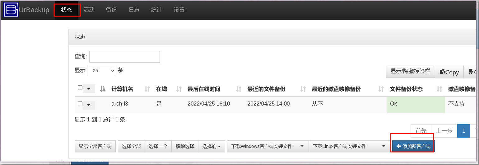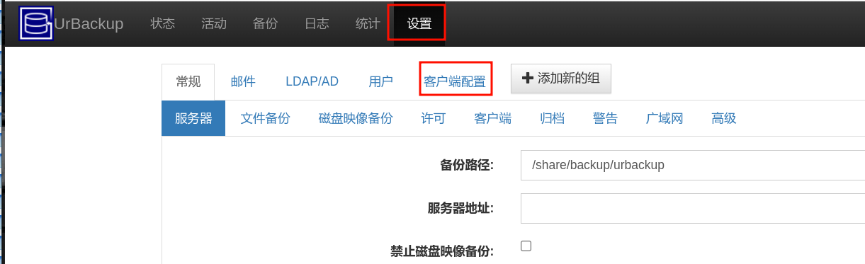 2.urbackup 服务端设置